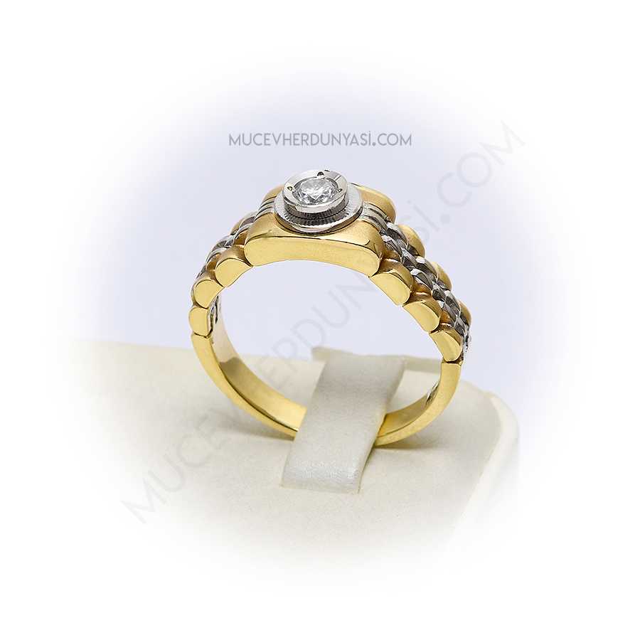 14 Ayar Altın Taşlı Erkek Yüzük | Mücevher Dünyası