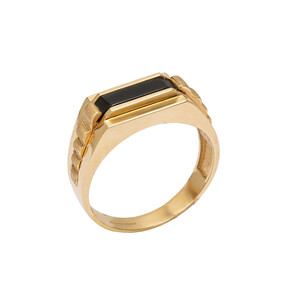14 Ayar Siyah Taşlı Altın Erkek Yüzük
