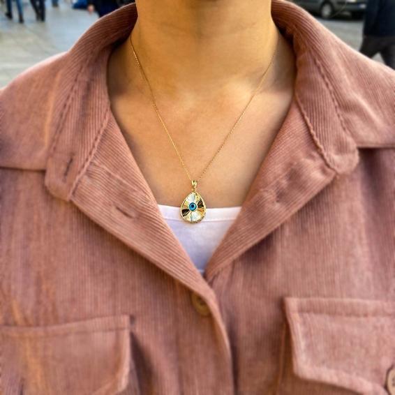Ürün Adı: 14 Ayar Nazar Boncuklu Altın Kolye Ucu Madalyon