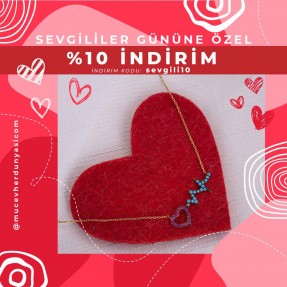 14 Ayar Renkli Taşlı Kalp Atışı Altın Kolye