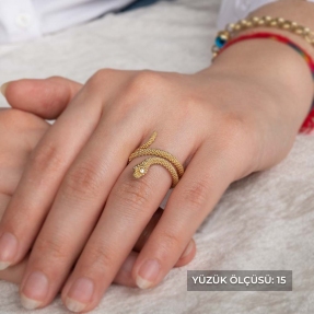14 Ayar Zirkon Taşlı Yılan Altın Yüzük - 15
