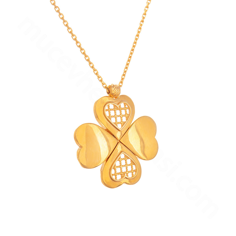 Ürün Adı: 22 Ayar Kalpli Dört Yapraklı Yonca Altın Kolye - 4,81 Gr.