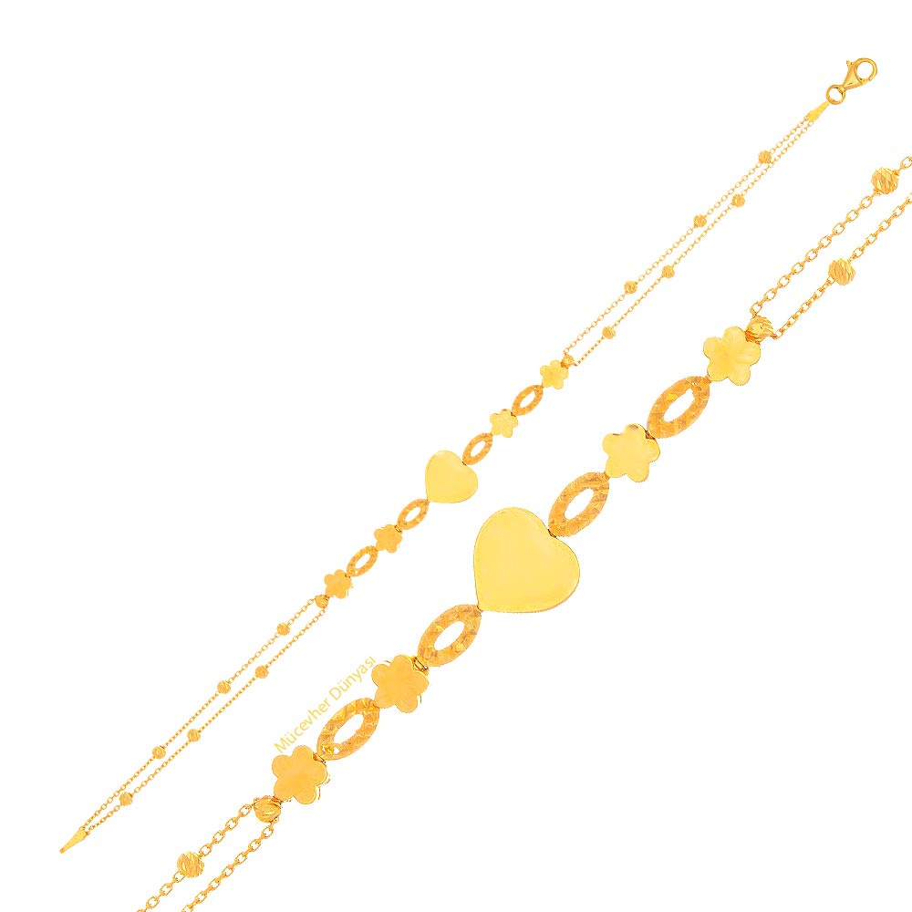 Ürün Adı: 22 Ayar Kalpli ve Çiçekli Dorika Altın Bileklik