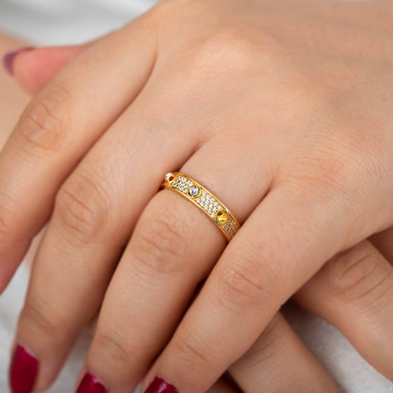 22 Ayar Petek Desenli Taşlı Altın Fantezi Yüzük - 6,15 Gr.