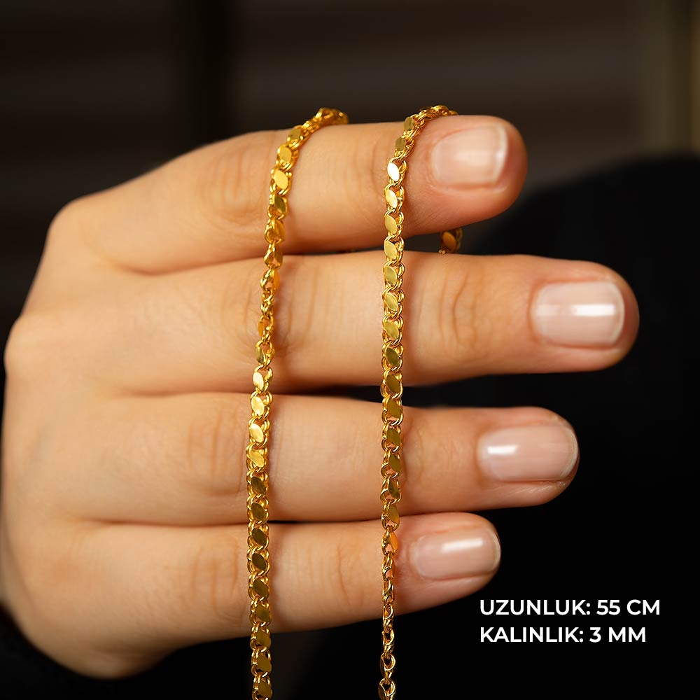 22 Ayar Pullu Halep Altın Zincir - 55 Cm. - 11,98 Gr. - 3 Mm.