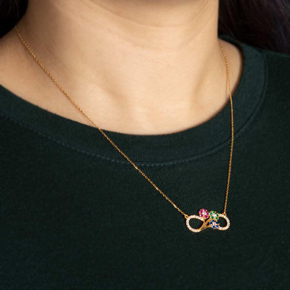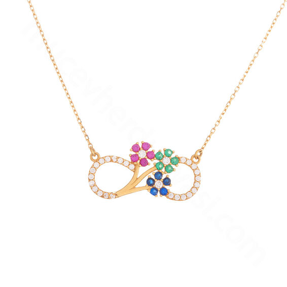 Ürün Adı: 22 Ayar Renkli Taşlı Sonsuzluk ve Çiçek Altın Kolye