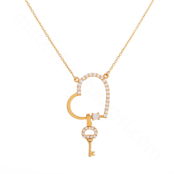 Ürün Adı: 22 Ayar Taşlı Kalp ve Anahtar Altın Kolye