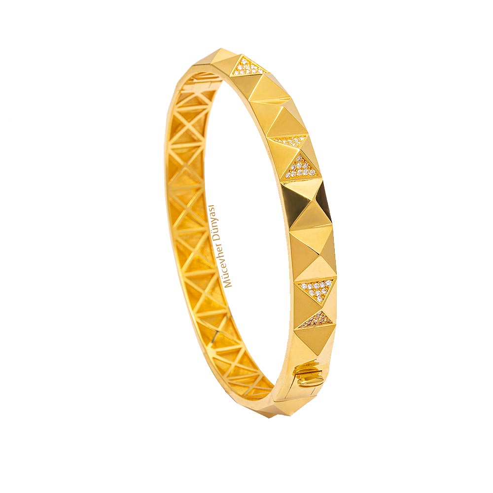 22 Ayar Taşlı Piramit Altın Kelepçe - 20,05 Gr.