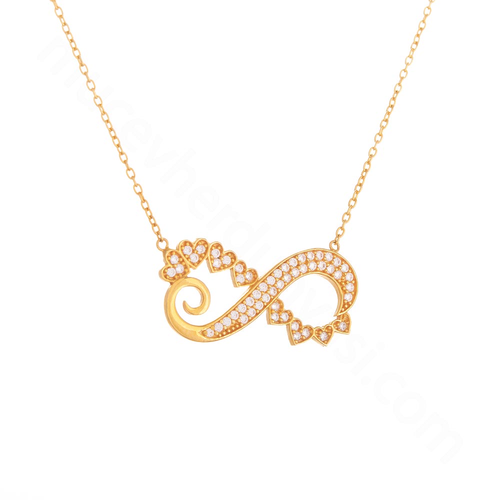 Ürün Adı: 22 Ayar Taşlı Sonsuzluk Simgeli ve Kalpli Tasarım Altın Kolye