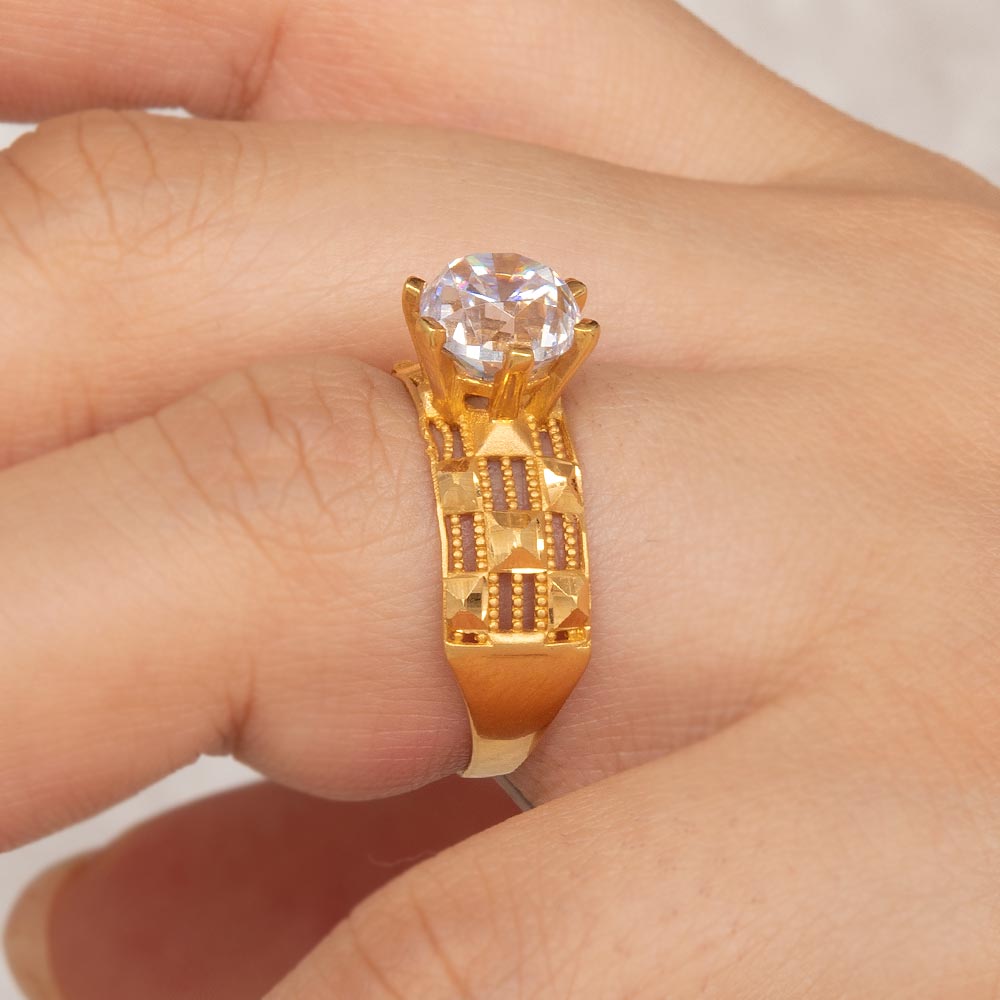 Ürün Adı: 22 Ayar Tektaşlı Desenli Altın Yüzük