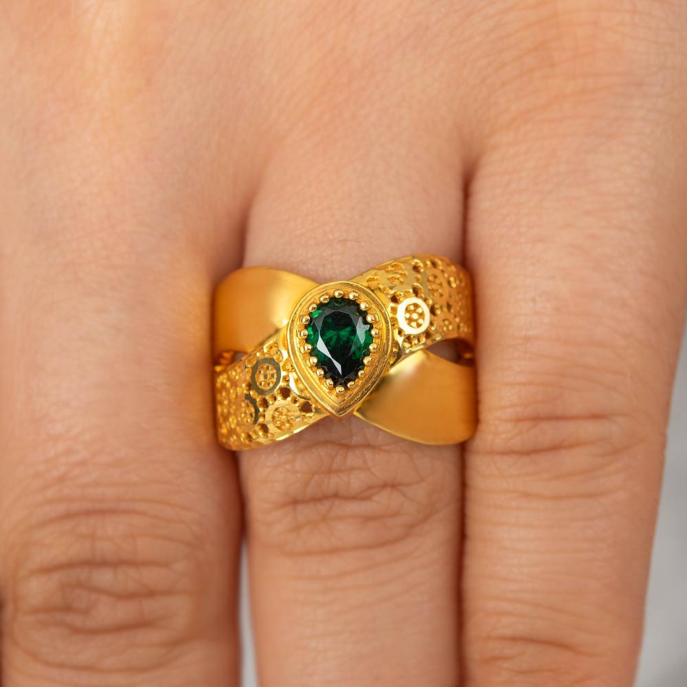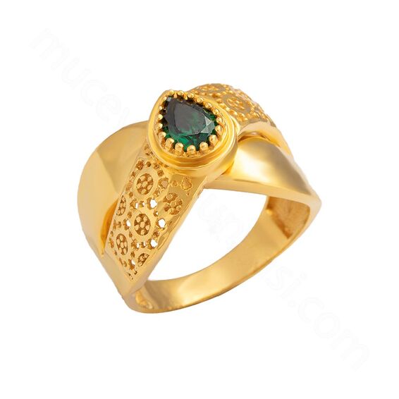 22 Ayar Yeşil Taşlı Altın Fantezi Yüzük - 8,34 Gr. - 17