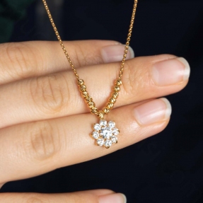 22 Ayar Taşlı Lotus Çiçekli Dorika Toplu Altın Kolye -6,03 Gr.