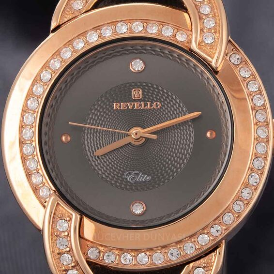 Revello Siyah Hasır Kordonlu Sırataşlı Kadın Kol Saati 80043775